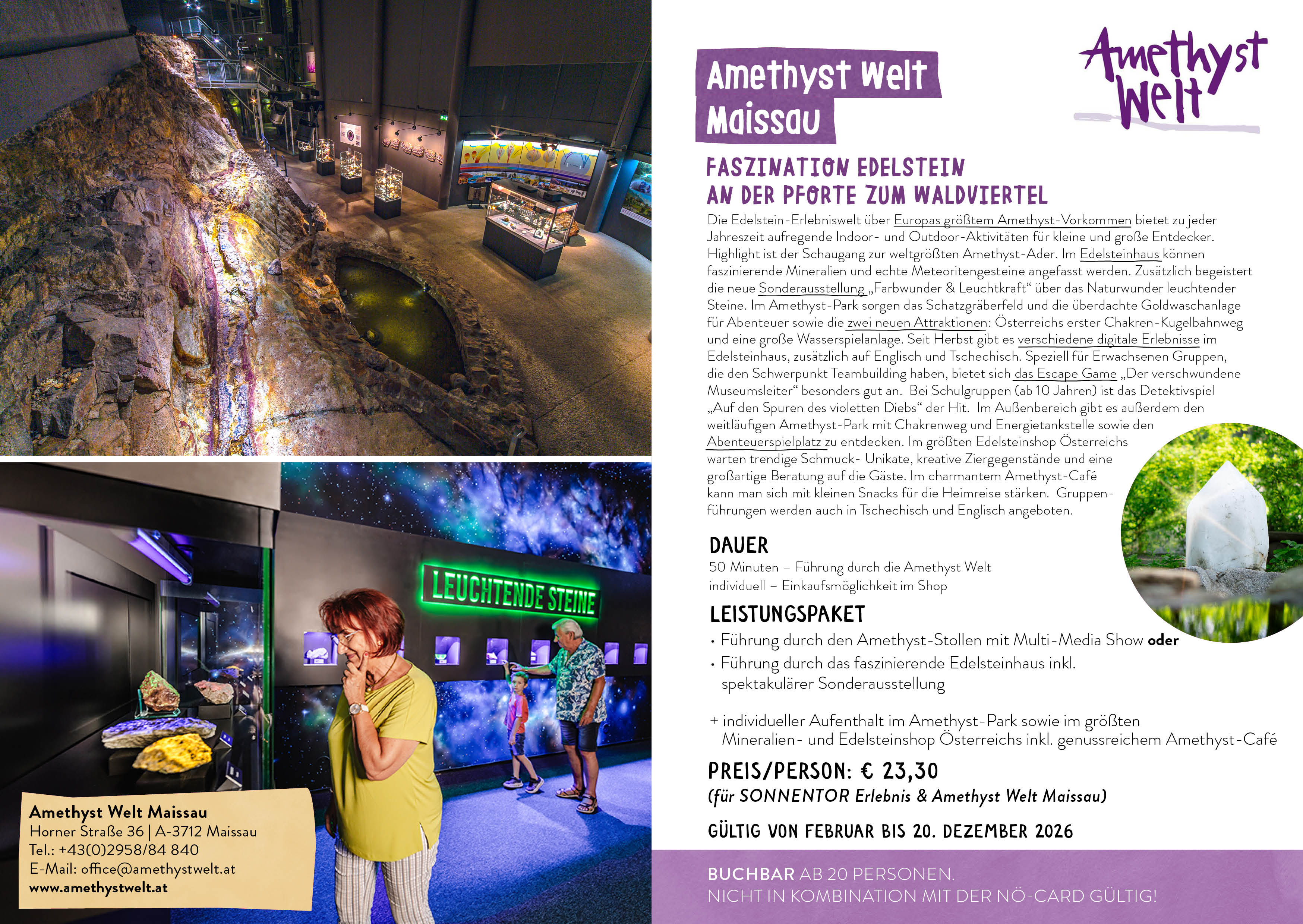 Erlebe das Waldviertel bei deiner Gruppenreise auf vielfältige Weise. Verbinde deinen Besuch bei SONNENTOR mit den besten Ausflugszielen der Region und sichere dir exklusive Vorteile. Stelle dir dein Programm ganz einfach im Baukastensystem zusammen – wähle eine Führung bei SONNENTOR und kombiniere sie mit einem Angebot unserer Gruppen-Package-Partner.