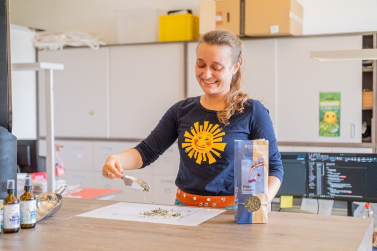 Nicht weniger unterwegs ist das regionale Rohwaren-Team. „Regional bedeutet Österreich, Deutschland und Italien“ erzählt sie. Zu ihrem täglichen Brot gehören die Begleitung der Kulturen von der Aussaat bis zur Ernte, die Verträge, Anbaubesprechungen und vieles mehr. Eingekauft werden die vielfältigsten Rohwaren – von A wie Anis bis Z wie Zitronenmelisse ist alles dabei. Und auch diese Anbauflächen können sich wahrlich sehen lassen: So sind es viele, viele Hektar beispieweise von Kümmel, Anis, Koriander, Apfelminze oder genauso an Pfefferminze. Leider kämpft auch dieses Team immer mehr mit der Klimaveränderung. „Wir zittern mit jedem Bauern mit, ob alles durchgebracht werden kann und es zu uns so schön reinkommt, wie es im Frühjahr aussieht“, berichten sie weiter.
